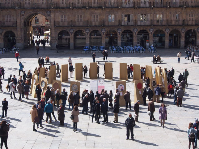 La exposición de las obras tuvo lugar el la Plaza Mayor de Salamanca, en la Casa de las Conchas y en la Hospedería Fonseca, donde sigue expuesta a día de hoy.