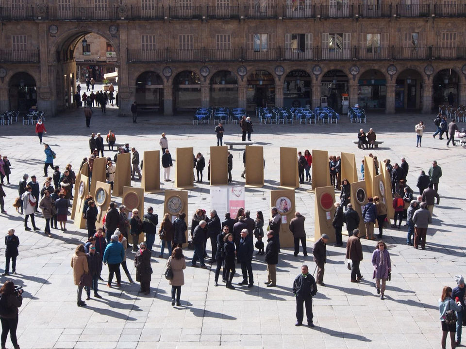 y tomó como referencia los 22 medallones anónimos y vacíos de la Plaza Mayor de Salamanca, intentando reparar